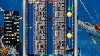 Kies uit verschillende wapenupgrades, waaronder lasers, bommen en raketten. Echter, toevoegingen zullen de grootte en hitbox van je schip vergroten, waardoor het moeilijker wordt om te ontwijken en gemakkelijker voor vijanden om je te raken. Verbeteringen voor de levenskwaliteit omvatten snelle opslagen, richtingshulp en een unieke terugspoelfunctie. Ondanks dat alles heeft het spel een steile moeilijkheidsgraad.
